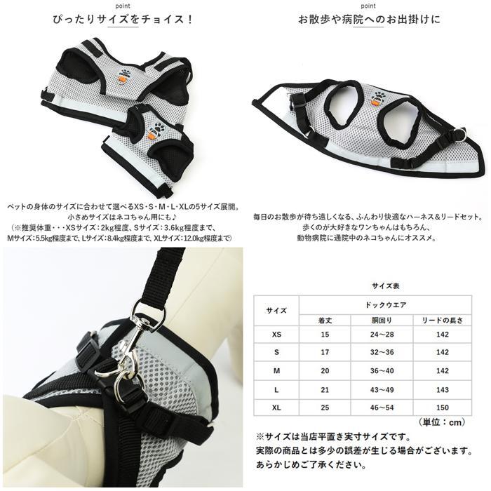 | 商品説明 | ・・真夏のお出掛けもサラッと快適!ワンちゃんもネコちゃんも使える「ペット用ハーネス&リードセット」が新登場。 ・【暑い季節でも快適・メッシュ仕様】 ・ハーネスの生地には、ふわりと柔らかく、通気性に優れた立体メッシュ生地を使用。汗ばむ季節やいっぱい歩くワンちゃんでもサラサラと快適。 ・【装着簡単!ダブルベルト方式】 ・広げたハーネスの輪になった部分に両前脚を通してから、「面ファスナーベルト×バックルベルト」を順番に留めるダブルベルト方式で装着簡単、身体にしっかり固定! ・【ハーネスとお揃いのリード付き】 ・ハーネスのベルトと同系色の丈夫なナイロンロープで仕上げたリードが付属。ナスカン金具でバックルベルトのDカンにワンタッチ接続が可能。 ・【ねじれを防いでお散歩スムーズ】 ・ナスカン金具とリードのジョイント部分が360度回転するので、お散歩中のリードのねじれも気にならない♪ ・【キラリと光って安心】 ・正面の肉球マークのエンブレムに加え、ハーネスの裾にリフレクター素材のラインをぐるりと配置。自動車のライトをキラリと反射するから、夜のお散歩でも安心。 ・【迷子札を付けてもOK!】 ・ハーネス正面、チェスト部分には、IDタグや迷子札、LEDライトが取り付けられるミニDカン金具付き。 ・【ペットの身体に優しいつくり】 ・リードで引っ張られる力を、胸や肩など身体全体で受け止めるハーネスタイプだから、ペットの身体への負担を軽減。首の骨が細く、呼吸器に負担がかかりやすいチワワやトイプードルなどの小型犬にも最適。 ・【ぴったりサイズをチョイス!】 ・ペットの身体のサイズに合わせて選べるXS・S・M・L・XLの5サイズ展開。小さめサイズはネコちゃん用にも♪(※推奨体重・・・XSサイズ:2kg程度、Sサイズ:3.6kg程度まで、Mサイズ:5.5kg程度まで、Lサイズ:8.4kg程度まで、XLサイズ:12.0kg程度まで) ・【お散歩や病院へのお出掛けに】 ・毎日のお散歩が待ち遠しくなる、ふんわり快適なハーネス&リードセット。歩くのが大好きなワンちゃんはもちろん、動物病院に通院中のネコちゃんにオススメ。 |