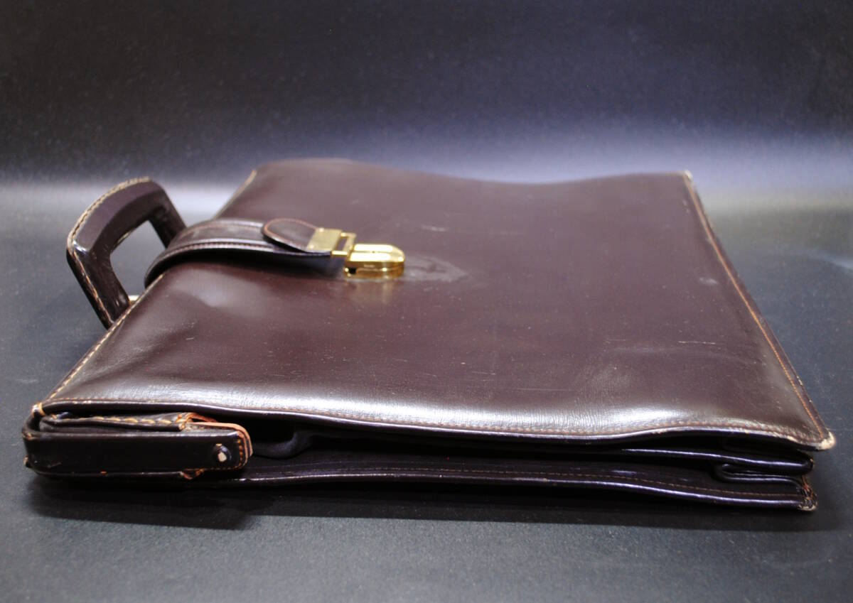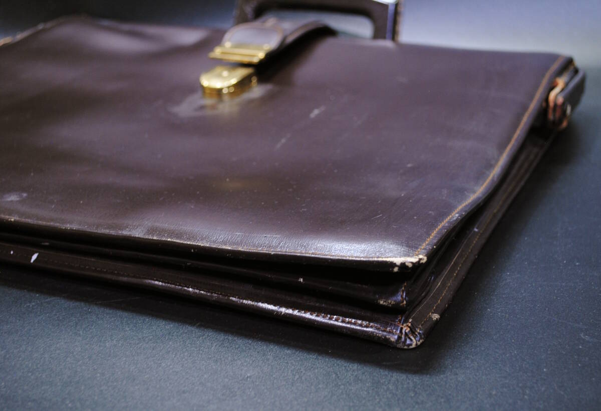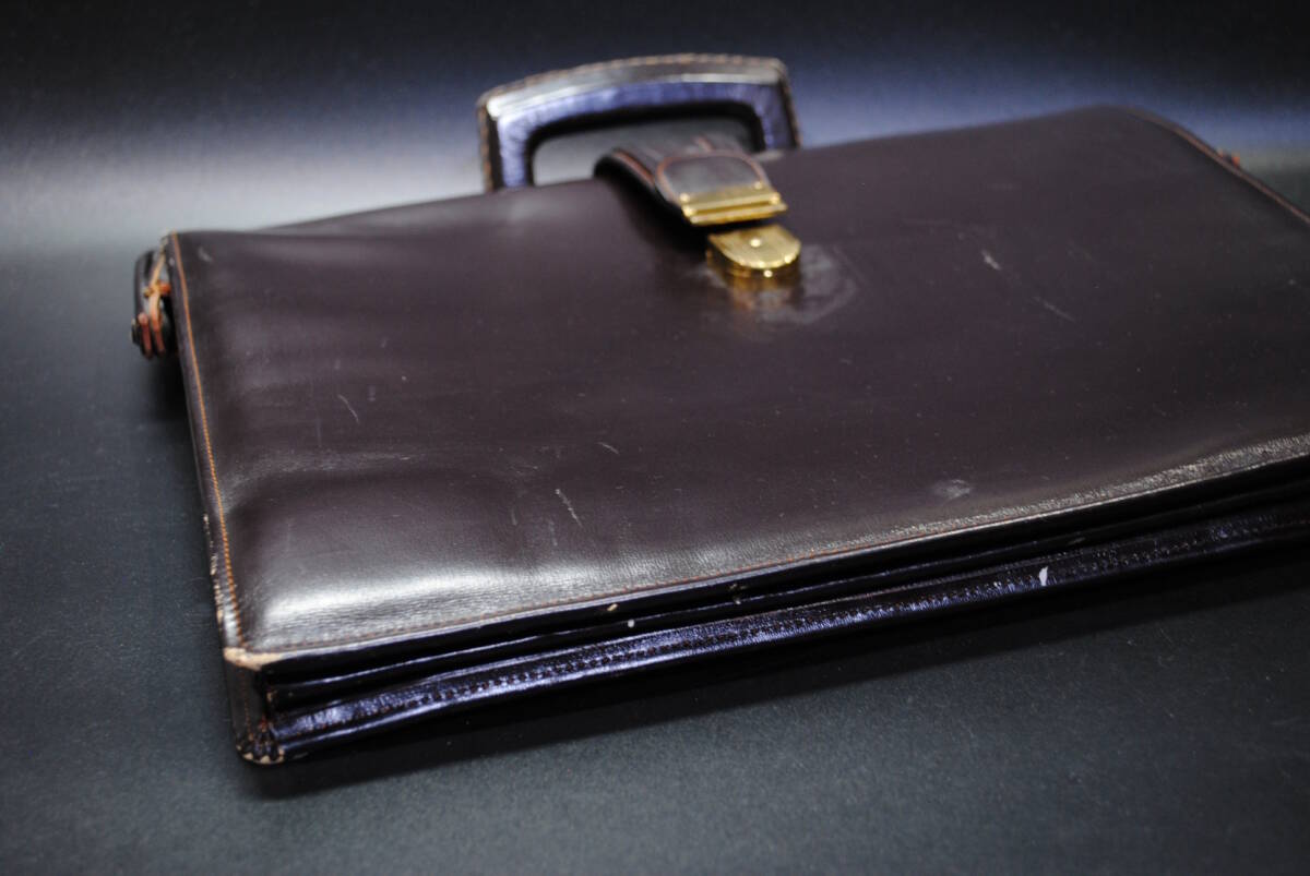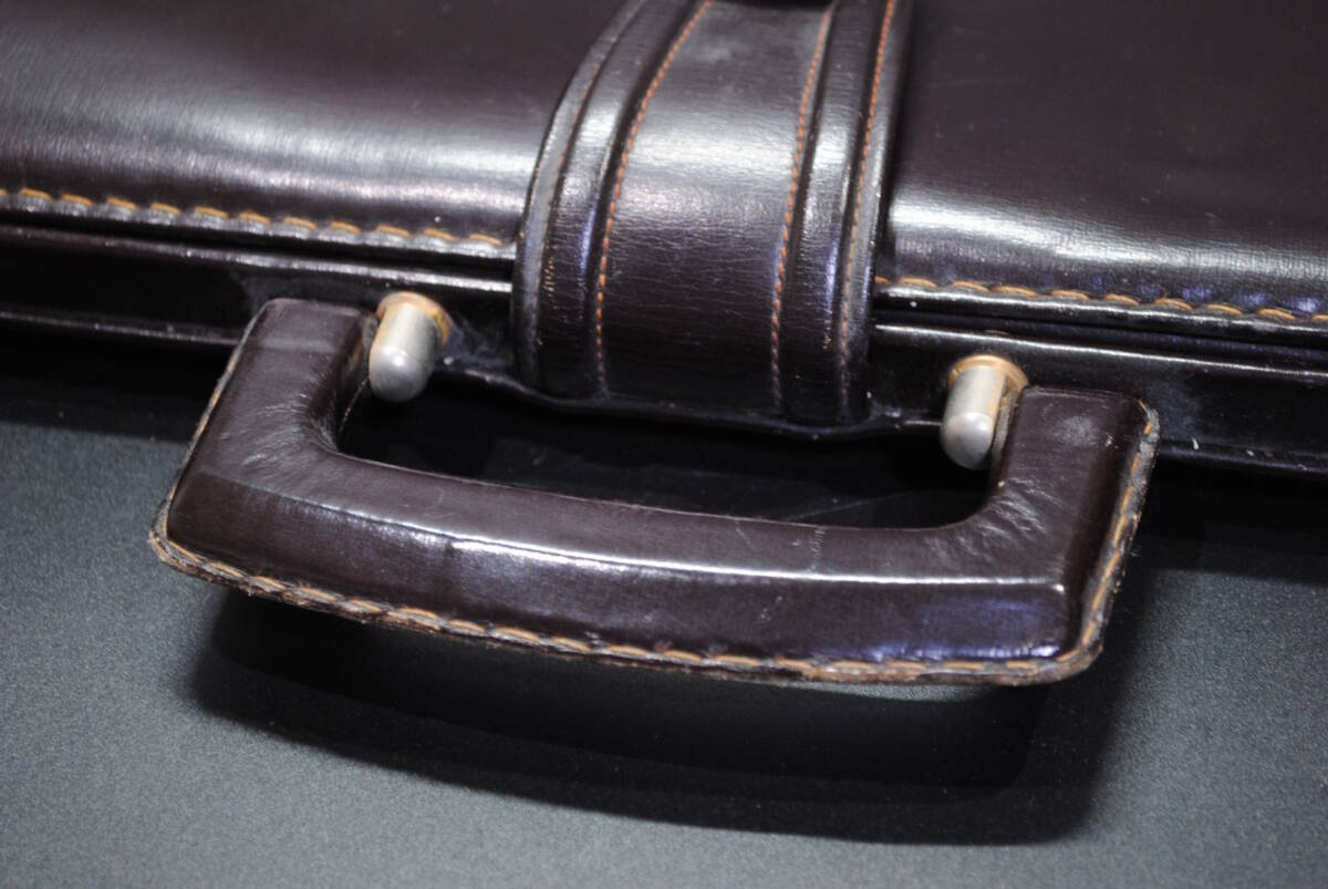 【売切り屋】レザーバッグ ビジネスバッグ 鞄 本革 リムダレスバッグ ダークブラン こげ茶色 メンズ アンティーク レトロ ヴィンテージ