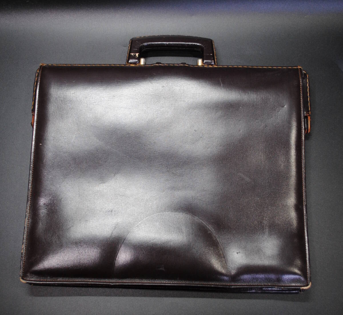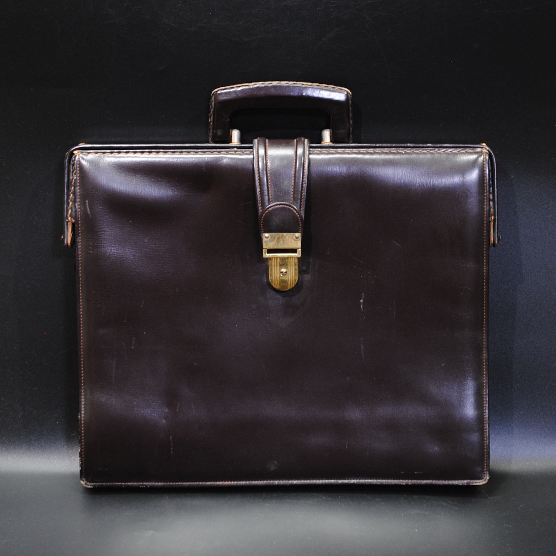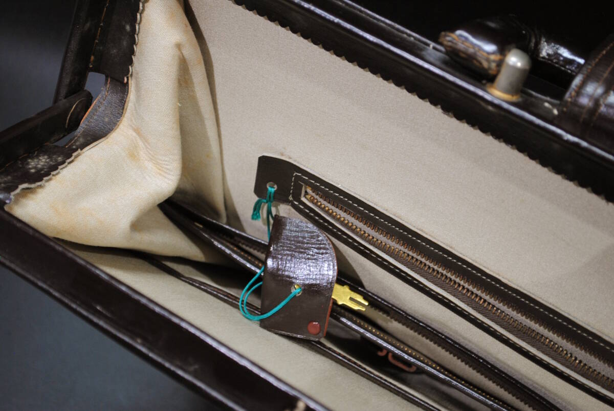 【売切り屋】レザーバッグ ビジネスバッグ 鞄 本革 リムダレスバッグ ダークブラン こげ茶色 メンズ アンティーク レトロ ヴィンテージ