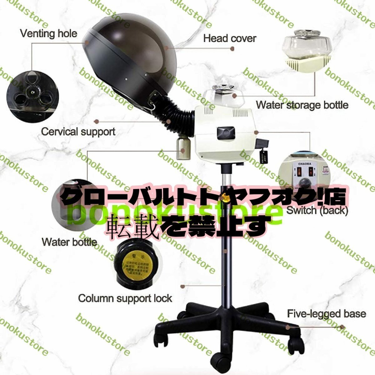 600W 電気サロンヘアスチーマー 集中コンディショニング用フード付きヘアスチーマー ローリングフロアスタンド付き スパや家庭用