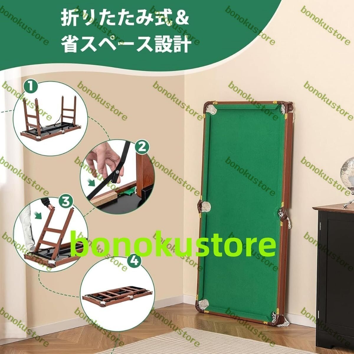 商品の説明 商品の説明折りたたみ式 ビリヤード台 大人から子供まで楽しめる自宅での娯楽に最適 ビリヤード台 仕様簡単に組み立てて、すぐにお使い頂けます折りたたみ式 ビリヤード台 取り付け手順 お届けした商品は基本的に組み立て済みで、2?3ステップでご使用いただけます商品の説明折りたたみ式 ビリヤード台 大人から子供まで楽しめる自宅での娯楽に最適 ビリヤード台 仕様簡単に組み立てて、すぐにお使い頂けます折りたたみ式 ビリヤード台 取り付け手順 お届けした商品は基本的に組み立て済みで、2?3ステップでご使用いただけます!折りたたみ式テーブルの脚を開きます。ネットポケットをネジで固定するために使用する金具を取り付けます。それならあなたはそれを楽しく使うことができます!ビデオでは使用中の商品を紹介しています。このビデオでは、商品セットアップの手順を説明します。このビデオでは、複数の商品を比較しています。ビデオは商品が開梱されているところを表示しています。ビリヤード台 詳細ビリヤード台 様々なレジャー・娯楽すべての付属品は完備している