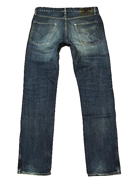 ハリラン BLUEBLUE スリム系 w33 (腰浅89x84位) ヒゲ タテ落ち ハリウッドランチマーケット PP 青緑紙パッチ