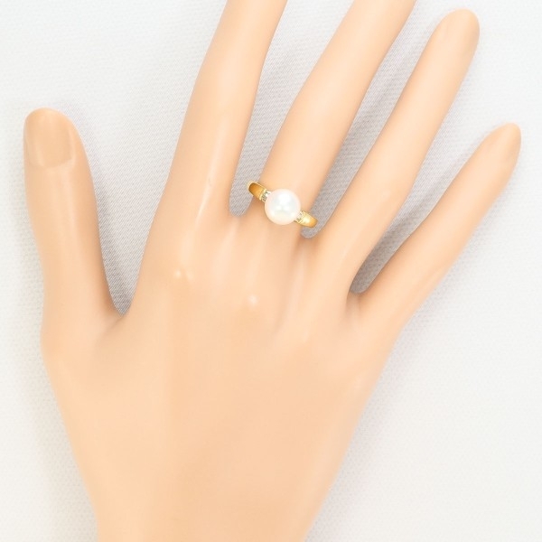 | K18YG リング 指輪 8号 パール(真珠) 約8mm ダイヤ 0.10 総重量約3.7g 中古 美品 送料無料 | |