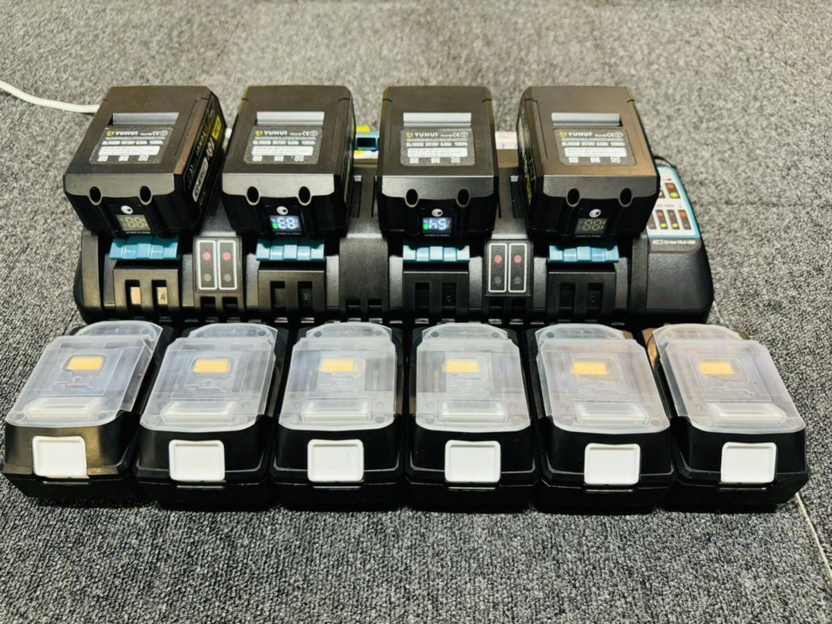 4個同時充電・作業効率UP: 4個の充電口にバッテリーをセットすることで4個同時に充電ができます。多数のバッテリーを利用する現場に便利です。また、充電できるバッテリーの組み合わせは自由です。充電時間目安(BL1860B)実用充電(80%以上まで)→約27分。満充電(100%)→約40分。環境により、異なります。