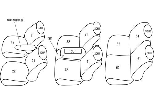 | 適合形状 | 2列目マルチ回転対座シート ※1列目助手席背もたれハーフカバー(バックテーブル使用可) |