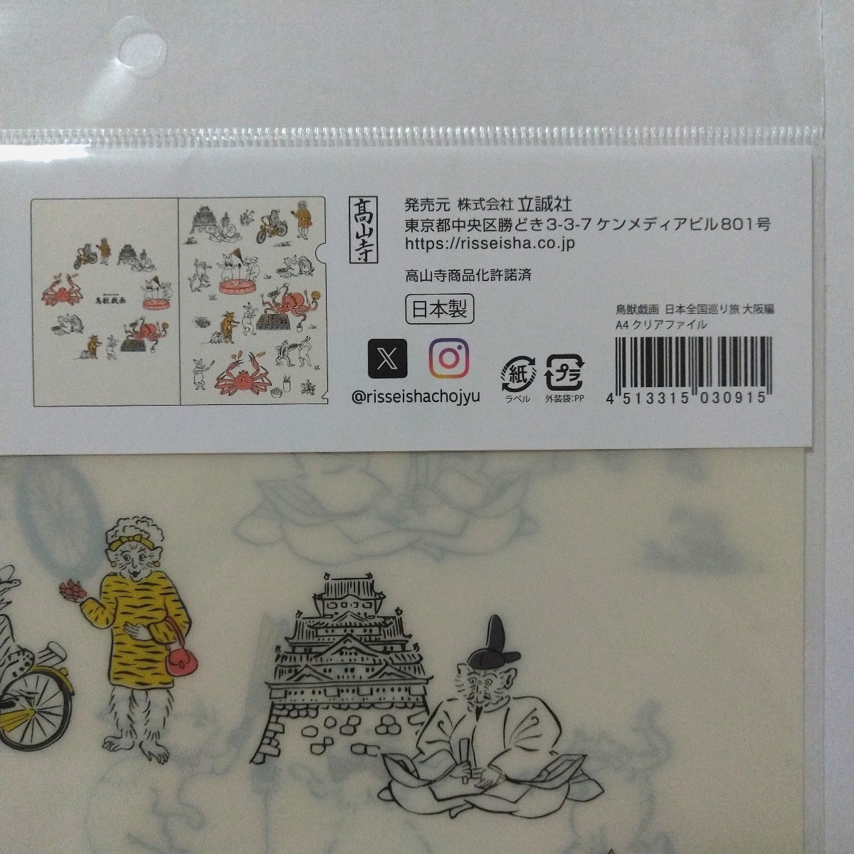 鳥獣戯画 日本全国巡り旅 大阪編のA4クリアファイルです。 | 出价者 | 信用 | 价格 | 时间 |