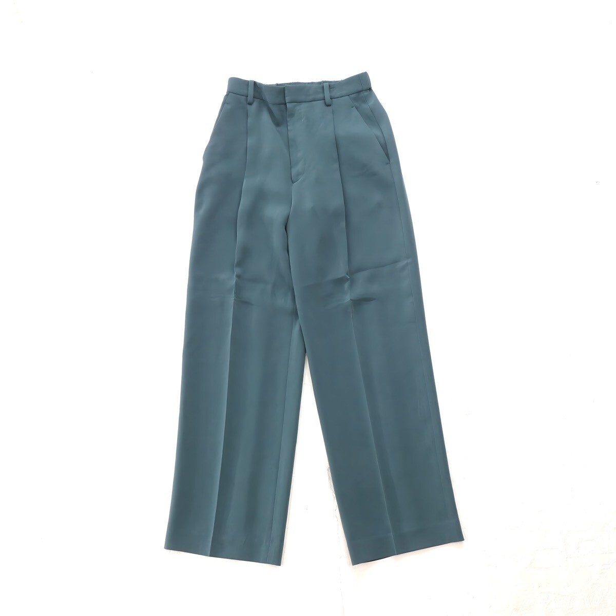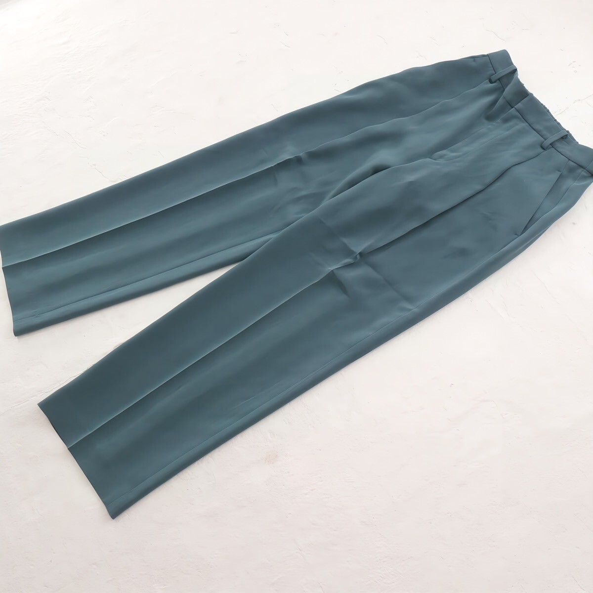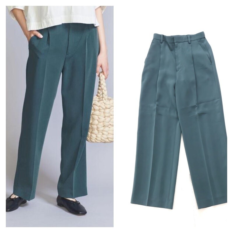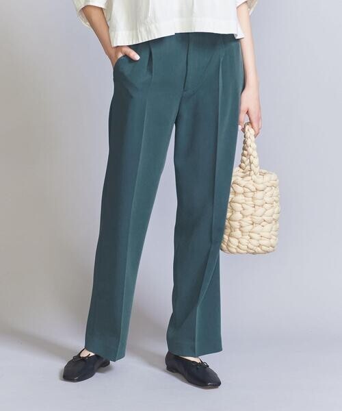 ・腰回りを包み込むハイウエスト型に、タック続きのセンタープレスのダブルクロスパンツです。