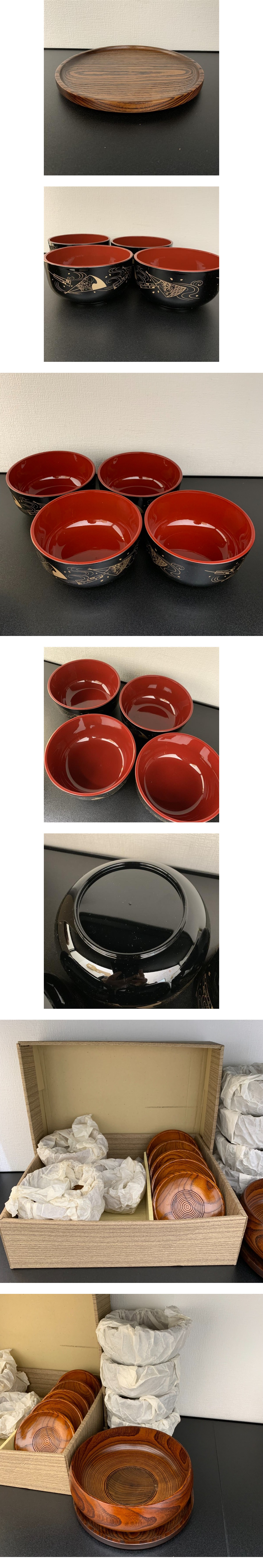 | #5275 桂由美 木製 お椀 5個セット 汁椀 菓子鉢 鉢 お盆 茶托 合成漆器 おまとめ | ||