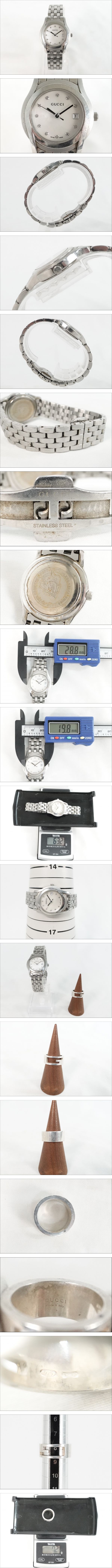 ブランド名:GUCCI 商品名:①腕時計(クォーツ) ②リング 付属品:無し 状態:譲り受けた商品の為、購入時期や使用頻度など詳細は分かりかねます。 ①電池切れもしくは電池が入っておらず、非稼働でございます。 リューズを回して時間調整確認できました。 リューズを24時間回して日付の変更は確認できました。 その他の操作は未確認となります。 ①②中古品の為、若干の変色や使用傷、汚れが見受けられます。 素人の目視確認の為、見落とし等あるかと思います。 中古品の為、歪みがある場合もございます。 画像にてご判断お願い致します。 神経質な方のご入札はお控え下さい。 ID:0321942026-211-05 弊社はインボイス登録事業者です。 登録番号:T8370001039877 ※※入札前に必ずお読みください※※ 説明文をよくお読みの上ご入札下さい。 画像に写っているものが全てになります。 商品の重さを量っているものに関しては多少の誤差がありますので、ご理解下さい。 商品の状態に関してはご自身でご判断の上、ご入札下さい。 あくまでも主観に基づく感想です。状態判断は画像にてお願い致します。 商品に対しどちらの情報が欲しいか分かりかねる部分もございますので、落札前にご質問頂ければと思います。 中古品の為、神経質な方のご入札はお控え下さい。 ご入札後の入札取り消しは出来かねます。 専門知識がなく、ご質問いただいても回答できない場合がありますが 気になる点がある方は入札前にご質問下さい。 素人による検品の為、見落としている場合もございます。 ご了承下さい。 ノークレーム・ノーリターンでお願いします。 | |||