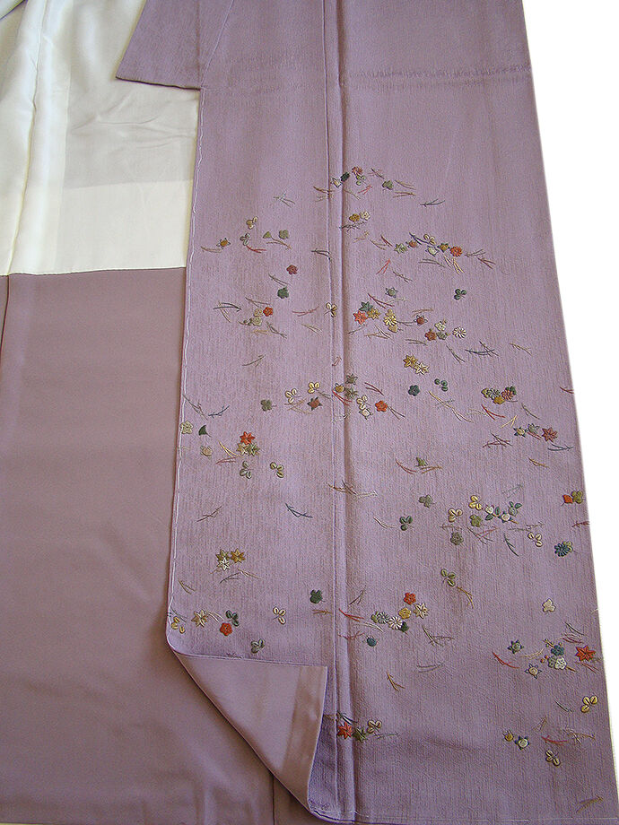 | 商品説明 | こちらのお品は「袷」でございますので、10月~5月にお召頂ければと思います。 しなやかで滑らかな手触りのぽってりとした着心地良い重めの極上ちりめん地の生地、 浅紫色地に精緻な手技を駆使した極め細やかな松葉や花草柄の総刺繍が丁寧に刺繍されています、 お慶びのお席や今日を美しく愛でるかの様な装いを印象付ける 正統派のお着物として一枚は欲しい麗しいお着物です。 八掛は共色(正絹)、裄長め、幅広い年代の方にお召頂けます。 |