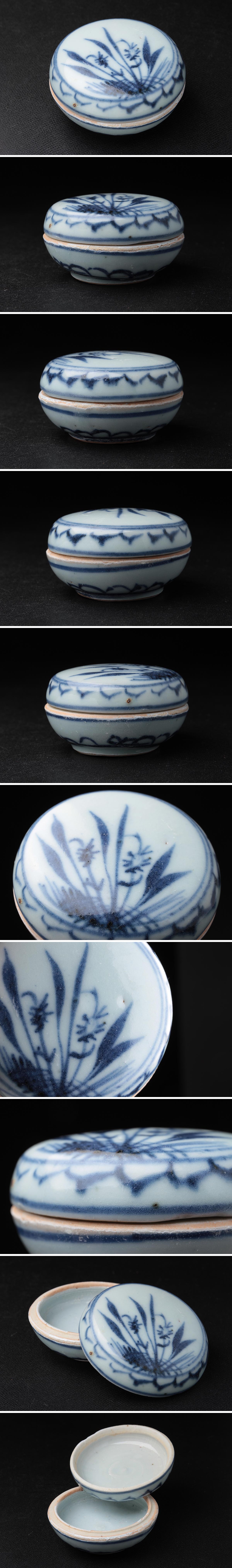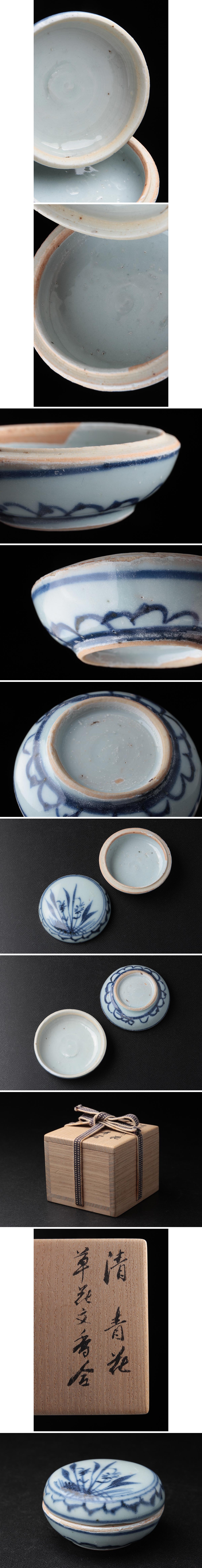 | ◆ 中国古美術 清時代 染付 草花文 香合・青花花卉紋香盒 径6.2cm 木箱・青華香合・蓋物・盖盒 中国古玩 茶道具 ◆