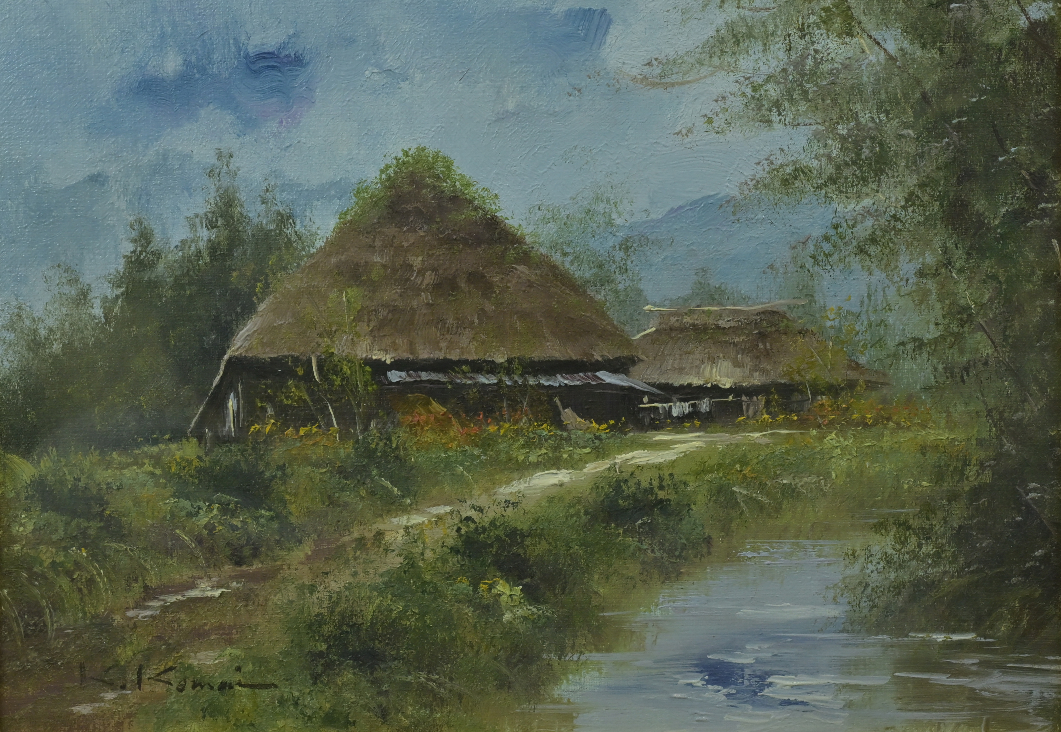 | ご覧いただきありがとうございます。 ・寸法 全長 約42cm×51cm 作品 約 24cm×33cm ・状態 額装に多少スレ。 | |