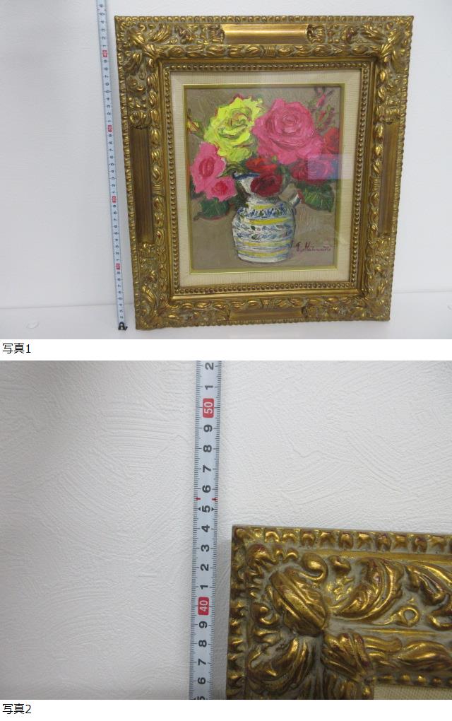 | 真作 松本富太郎作 薔薇 油彩 油画 油絵 肉筆 原画 サイン入 #3844 |