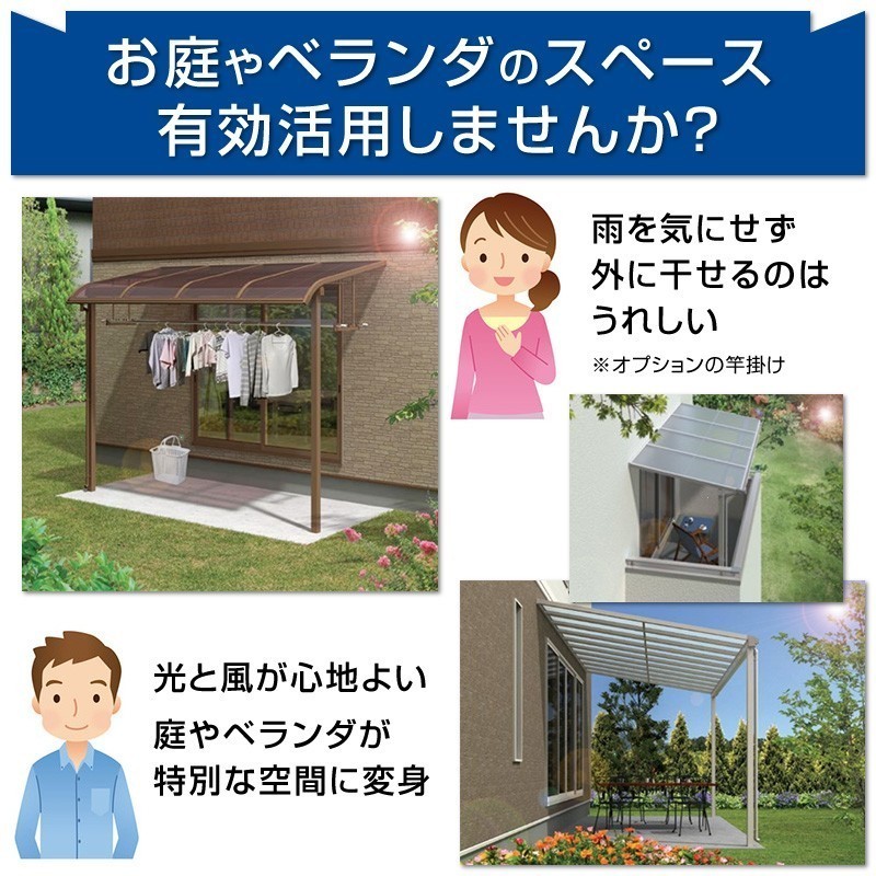 | 商品詳細 | この度は数ある商品の中から当商品を閲覧頂きまして有難う御座います。 商品定価 214,060円 ⇒ 販売価格 87,670円(送料・税込み) ●積雪50センチまで対応可能な積雪地域用タイプ。 ●設置場所に障害物がある、屋根を移動桁より意図的に張り出したいなど、 使用用途や場所にあった形に柱の位置を前後左右に移動できます。 ●耐風圧 風速42m/s相当まで対応。 ●中桟ビードをクッション性の高い形状に新設計。気になる屋根のバタつき音を軽減。 ●ねじ種類・シーリングを必要最小限にして施工の効率化を実現。 サイズ:間口1.5間2760mm(屋根外々) 出幅4尺1170mm(壁面から柱芯まで) 高さ2600mm(地上より桁下まで) タイプ:1階用 移動桁仕様(間口方向、出幅方向どちらにも柱を移動可能) 本体カラー:ライトステン・ライトブラウン・ライトブラック・ ライトホワイト(受注生産) ポリカ屋根:ブルースモーク・ブラウンスモーク・クリアマット2 ●テラス本体の組立説明書はこちらからご覧頂けます。 お好みの本体カラー、屋根材をお選び頂けます。 オーダーフォームのご要望欄にてご希望の本体カラー、屋根材をご連絡下さい。 オプションも安価の金額で、ロング柱仕様、熱線遮断ポリカーボネート板、 竿掛け、前面パネル、側面パネルもご提供可能です。お気軽にお問い合わせ下さい。 ■オプション品をご希望の方は落札前にご希望のオプションをお選び頂いてから金額を お問い合わせください。ご納得して頂いた上、落札後にオーダーフォームで ご希望のオプションをご連絡ください。折り返しで合計の金額をご案内させて頂きます。 ■オプション「前面パネル」の組立説明書はこちらからご覧頂けます。 ■オプション「前面パネル隙間隠し」の組立説明書はこちらからご覧頂けます。 ■オプション「側面パネル」の組立説明書はこちらからご覧頂けます。 ■オプション「側面パネル隙間隠し」の組立説明書はこちらからご覧頂けます。 ■オプション「吊下げ式固定物干し」の組立説明書はこちらからご覧頂けます。 ■オプション「吊下げ式固定物干し(ワイド)」の組立説明書はこちらからご覧頂けます。 ■オプション「折畳み物干し」の組立説明書はこちらからご覧頂けます。 ■オプション「屋根妻パネル」の組立説明書はこちらからご覧頂けます。 ■オプション「屋根ふき材補強部品」の組立説明書はこちらからご覧頂けます。 |