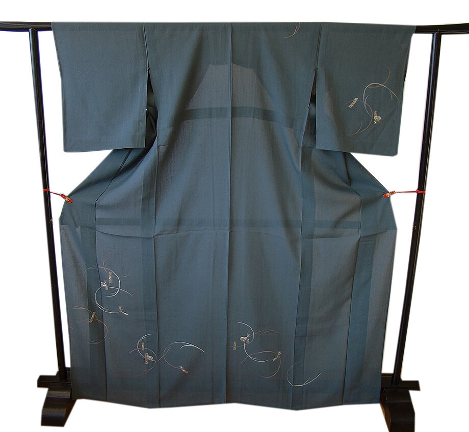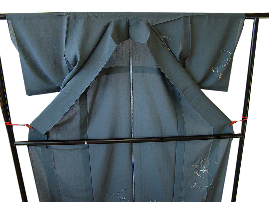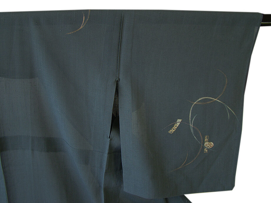 | 商品説明 | こちらのお品は夏物でございますので、7月~8月にお召頂ければと思います。 「紗」と言えば、絽と双璧を成す夏のお着物の生地で、 その最大の魅力は絶妙の透かし加減でございます。 清涼感溢れる地の風を通すしなやかさは、 夏に着物を着るという贅沢を快適に愉しませてくれる事でしょう。 着物には、大きく分けて「袷(あわせ)の着物」と「単衣(ひとえ)の着物」と「夏着物」があります。 反物(表地)を着物に仕立てるときに、裏地類をつけるものを袷の着物、 つけないものを単衣の着物と呼び、胴裏や八掛といった裏地がつかない一枚ものの着物です。 また裏地がないため、座る時などにヒップのラインが目立たないよう、 居敷当て(いしきあて)の生地をつけることもあります。 居敷当ては付いておりません。 大変にしなやかでさらりとした透け感が愉しく、独特のシャリ感に満ち溢れた 肌にべた付かない極上の風合いを纏う、「紗紬」の生地は、 渋いむしあお色地に短冊柄の染柄に金彩加工仕立て、 女性の美しい表情と凛とした麗しさを醸す洗練された印象を身に着ける逸品です。 |