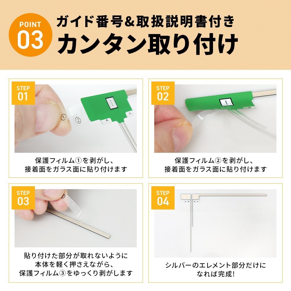 ![]() ■フィルムアンテナ エレメント保護フィルムの面積を最小限に抑えた、高感度フィルムアンテナです。 お使いになっているナビの載せ替えや補修などにお使いいただけます。 取り付けは一般的なフィルムアンテナ同様に簡単に取り付け出来ます。 メーカー純正品同等の感度を実現しました。 ※汎用品となりますので、純正フィルムとは形状は異なります。 お取り付けの際、番号を振っておりますので簡単に取り付け出来ます。 こちらの商品は、4チューナーのフルセグ向け商品となります。 適合に関しましては、下記適合表をご確認ください。 適合表に記載の機種以外の適合情報は当店ではわかりかねます。 ※GPS機能はございませんので、ご注意ください。 ※電波を通しにくいガラスやフィルムを張り付けたガラスでは受信感度が低下する場合がございます。 ※取付ミスによる商品の保証は致しておりません。 ■セット内容 ・L型フィルムアンテナ 右×2 ・L型フィルムアンテナ 左×2 万が一商品に不良があった場合は良品と交換いたしますので、ご連絡お願い致します。 ■当店取り扱いのフィルムアンテナに関しまして 当店のフィルムアンテナは汎用品の為、多くの機種にお使いいただけますが、 挟み込むタイプにはご使用いただけませんのでご注意ください。 ![]() ![]() ![]() |