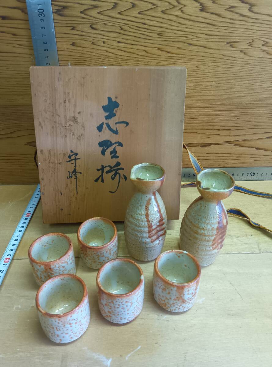 24102705 志野焼酒器セット 徳利・お猪口セット とっくり おちょこ 志野焼セット 晩酌 美品 未使用品 [浏览原始页面]