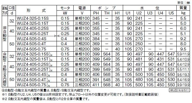 | 吐出量 | 全揚程 | 吐出量 | 全揚程 | ||