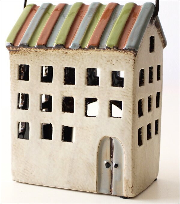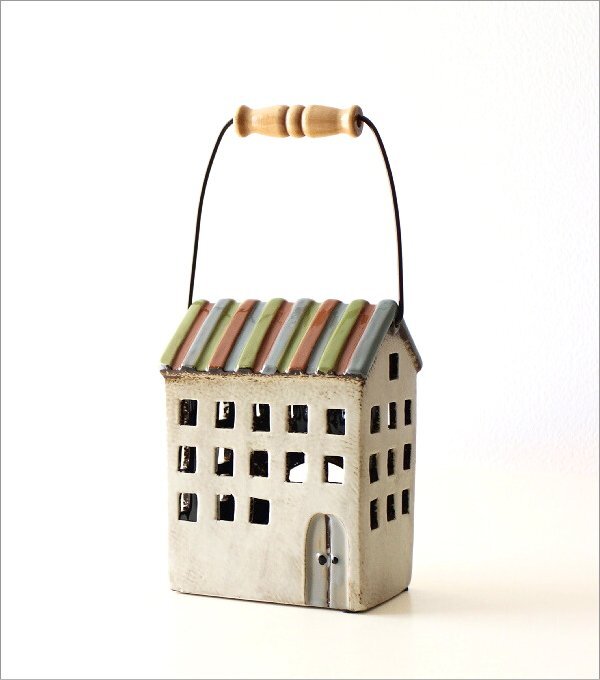 | 陶器のノスタルジックなハウスは カラフルなカラーの組み合わせとフォルムが ヨーロッパの牧歌的な風景を思わせる 可愛いデザイン 絵本から飛び出してきたような 優しい雰囲気を醸し出しています 市販のLEDキャンドルを入れて飾ると 小さな窓からほんのり灯りがもれて メルヘンの世界が広がります ハンドル付きで明かりを灯しながら 移動も楽々です 商品名 : 陶器のメルヘンハウス ハンドル付きキャンドルハウス B 商品番号 : toy9802 全体のサイズ(cm) : 幅14.5×奥行10×高さ18(取っ手含まない) 材質 : 陶器 重量 : 850g 生産国 : 中国 ※手作り品のため色ムラや形状、僅かなサイズの違いはご容赦ください ※ディスプレイによる色の違いはご了承下さい |