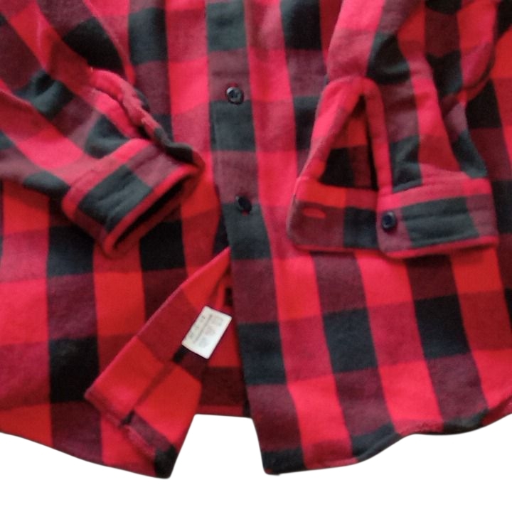赤×黒のクラシックなブロックチェック柄が印象的で、当時のアイビー アメカジスタイルを感じさせる一枚です。