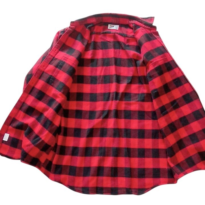 【80s 当時 VAN JAC ヴァン ヴィンテージ チェック ネルシャツ サイズL 赤 黒】