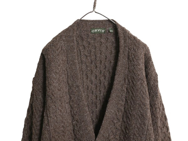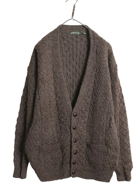 | 商品名 | アイランド製 オービス フィッシャーマン ウール ニット カーディガン メンズ L / 古着 重ね着 前開き アラン ケーブル セーター ブラウン |