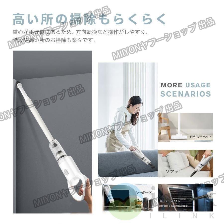 このスティッククリーナーは、わずか0.4kgの軽量設計で、片手でも楽に操作できます。その軽さは長時間の使用でも疲れを感じにくく、階段や高い場所の掃除も容易にこなせます。軽量かつコンパクトなので、持ち運びも簡単で、家の中だけでなく車内の清掃にもぴったりです。また、収納スペースを有効活用できるコンパクト設計により、場所を取らずに保管できます。家庭用だけでなく、オフィスでも便利に使えるデザインで、どんな場所でも快適に使えます。これ一台で、家全体を清潔に保ちましょう。