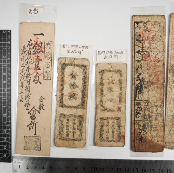 | 【稀少資料】倉敷 山口 鉱山札 河原山物産 彦根藩 出雲藩 享保(古銭 古札 藩札 米札) | ||||