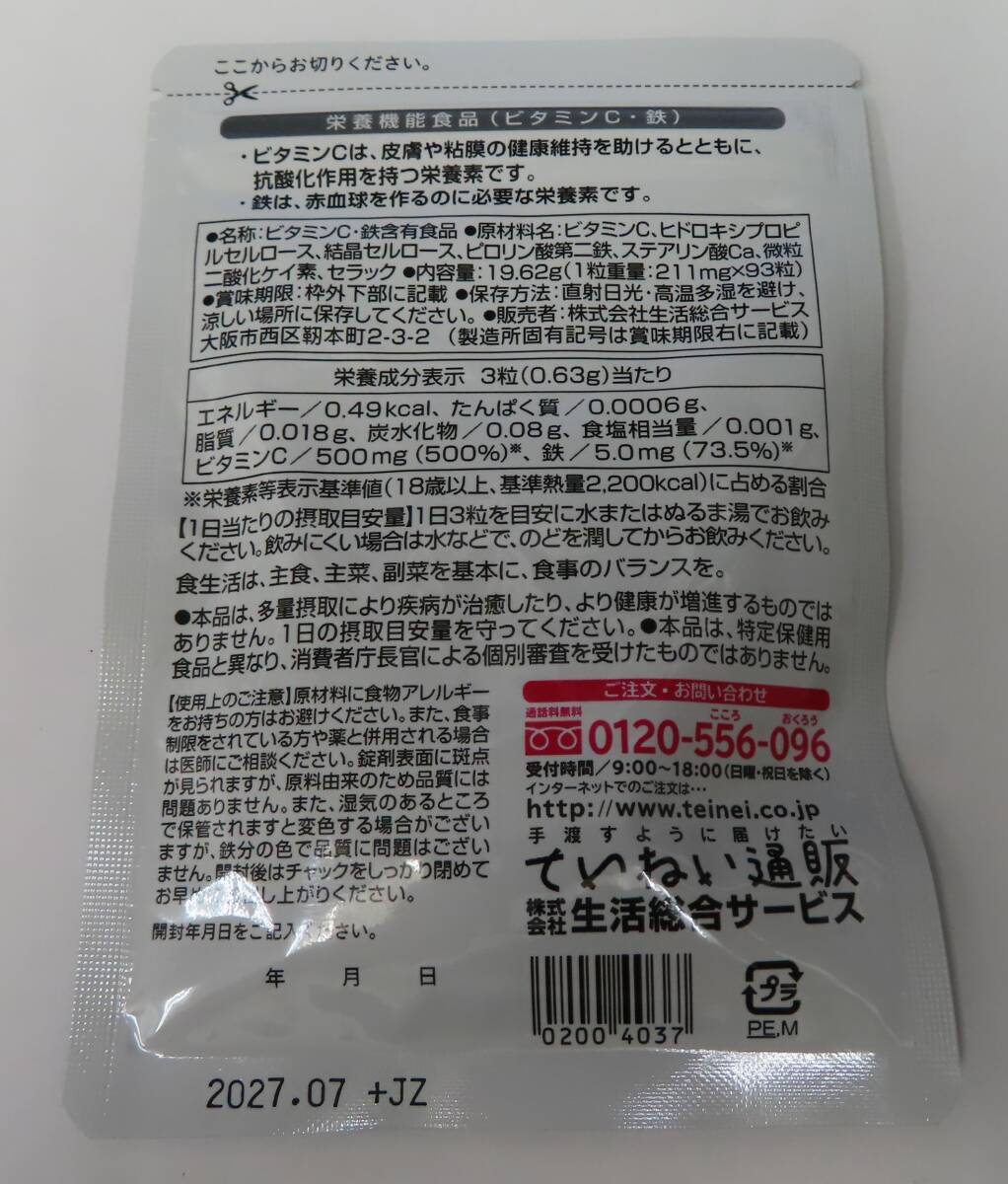 | #91868 新品 ていねい通販 鉄ビタC 1袋(93粒) 31日分 ビタミンC・鉄 サプリメント 賞味期限2027.7 | ||