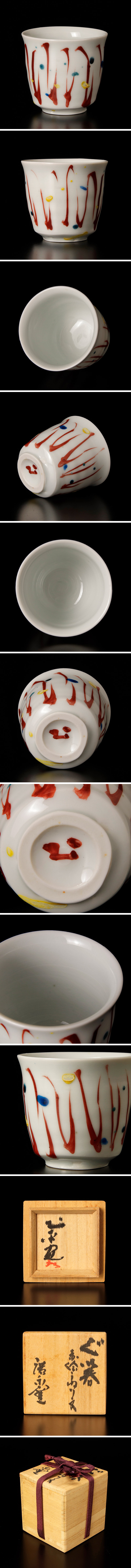 | 【古美味】廣永窯 坪島土平造 赤絵うねり文ぐい呑 茶道具 保証品 |