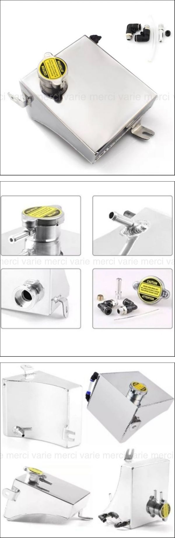 | ご覧いただきありがとうございます。 アルミ製ラジエーターリザーブタンク1.5L(シルビア、180SX)の出品です。 ●商品説明● ・リザーブタンク本体はアルミ製となっており軽量でサビにも強く、耐食性に優れています。 タンクのキャップの仕様は加圧弁となっており、ホース用アダプターはインジケーター付きとなっておりますので、冷却水の量がわかる仕様となっております。 冷却水の排出につきましては、ドレンが付いておりドレンボルトを外すだけで排出可能となっております。この機会に純正のプラスチックタンクからの交換をしてみてはいかがでしょうか。 ●商品内容● ・セット内容:リザーブタンク×1個、ホース用アダプター×1セット、ドレンボルト×1個、キャップ(加圧弁付)×1個 ・材質:アルミ製(鏡面仕様) ・仕様:専用設計 ・カラー:シルバー(銀色) ・状態:新品、未使用品 ●参考適合車種● ・メーカー:日産 ・車種:シルビア、180SX、240SX ・型式:S13/S14/S15 ・年式:1989年~1994年 ●注意事項● ・お客様によるサイズ違い等でのご返品及びキャンセルは不可とさせて頂きます。 ・年式や型式等により適合しない場合がございますので、純正品番をお確かめの上、 ご入札をお願い致します。 (上記の場合は、ご返品はできかねます。) ・お取り付けに関しましては、自己責任にてお願い致します。 ・商品取り付け後に発生した、事故やトラブルにつきましては一切の責任を負いかねます。 ・発送後の紛失や破損につきましては、運送会社の補償内容の規定に従います。 ●発送について● ・匿名配送にてお送りさせて頂きます。 ●送料について● ・当方にて負担させて頂きます。 宜しくお願い申し上げます。 | ||
