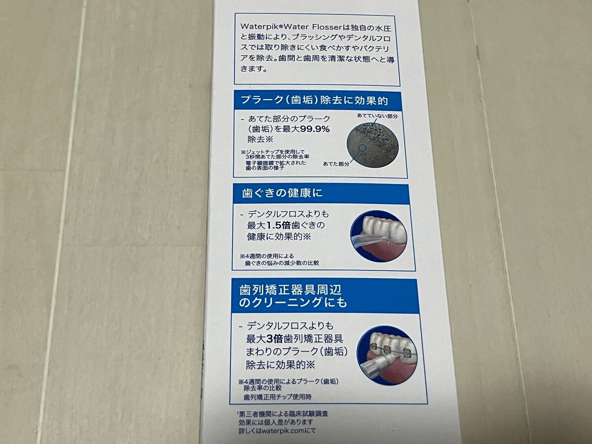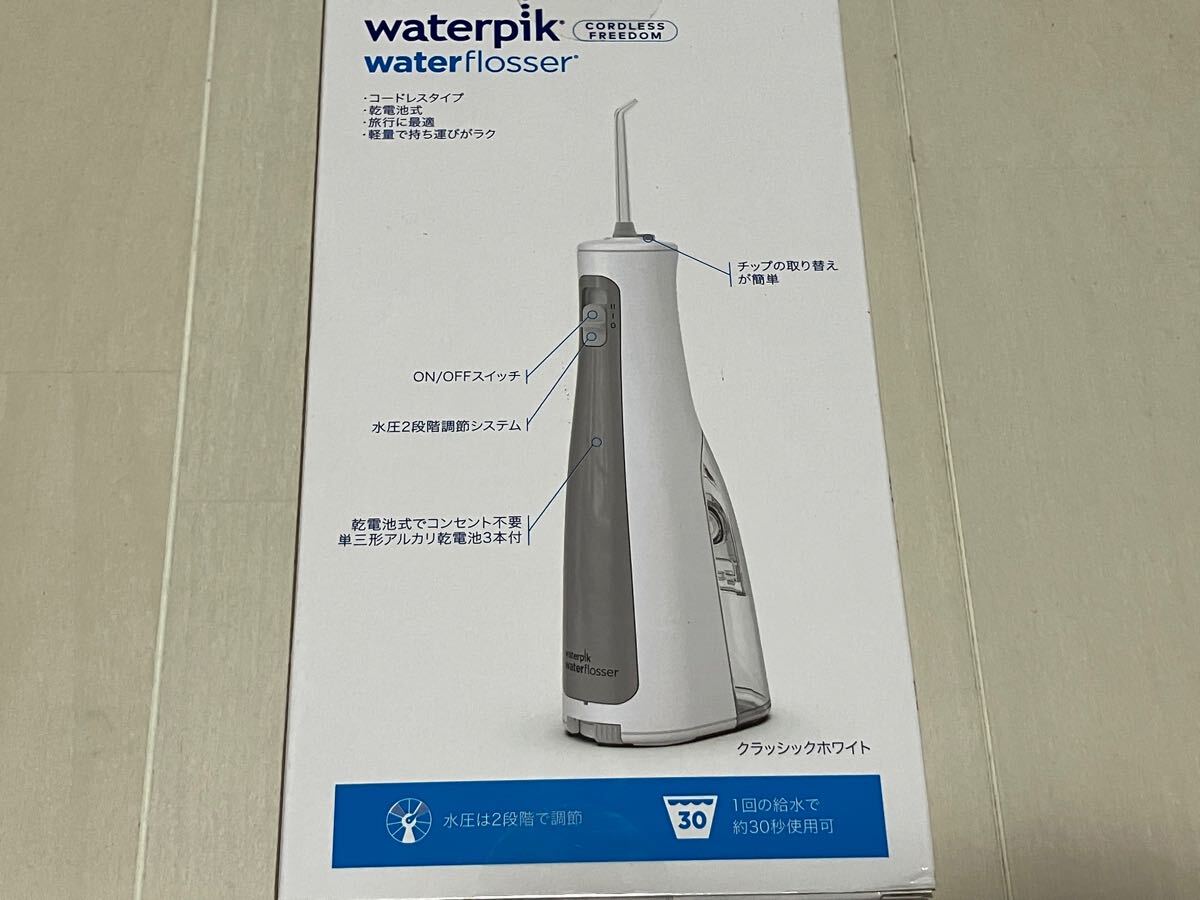 | 商品説明 | ●新品未開封の商品です。送料込みです。 乾電池式の口腔洗浄器。ポータブルで軽量なので使い勝手バツグン。いつでもどこでも爽やかな口腔環境を提供します。充電を待つのが面倒な方や外出先へ持ち運びたい方などにおすすめです。 シリーズ累計販売台数 5500万台突破*。 4世帯に1世帯が持っている**、世界で最も売れている口腔洗浄器***。 ■安定感のあるグリップ感 ハンドルの突起が摩擦力を上げて滑りを防止。 ■充電を待つ必要がない乾電池式 充電を待つ必要がない単三電池交換型製品です。放電時に素早く交換して、すぐに使用することができます。 ■扱いやすい設計 コードレスなので場所を問わず使用いただけます。 ■1回の給水で30秒間使用可能 口内片側の口腔洗浄器の推奨時間である30秒が経過すると停止します。 *水圧によって使用時間が異なります。 【商品仕様】 メーカー名:Waterpik サイズ(チップ装着時): 約W64×H299×D92 (mm) 防水性能:あり(IPX7等級) タンク容量:約148ml 本体重量:340g 電源方法:乾電池式 定格電力: 単三形乾電池3本(アルカリまたはニッケル水素) 充電池:AAバッテリー 給水1回での連続使用時間:約30秒 水圧調整機能:2段階 水圧:45、75PSI 付属品:ジェットチップ×2、歯列矯正用チップ×1(計2種3本)、単三形アルカリ乾電池×3、取扱説明書 https://waterpik.jp/products/waterpik-wf-03-cordless-freedom |