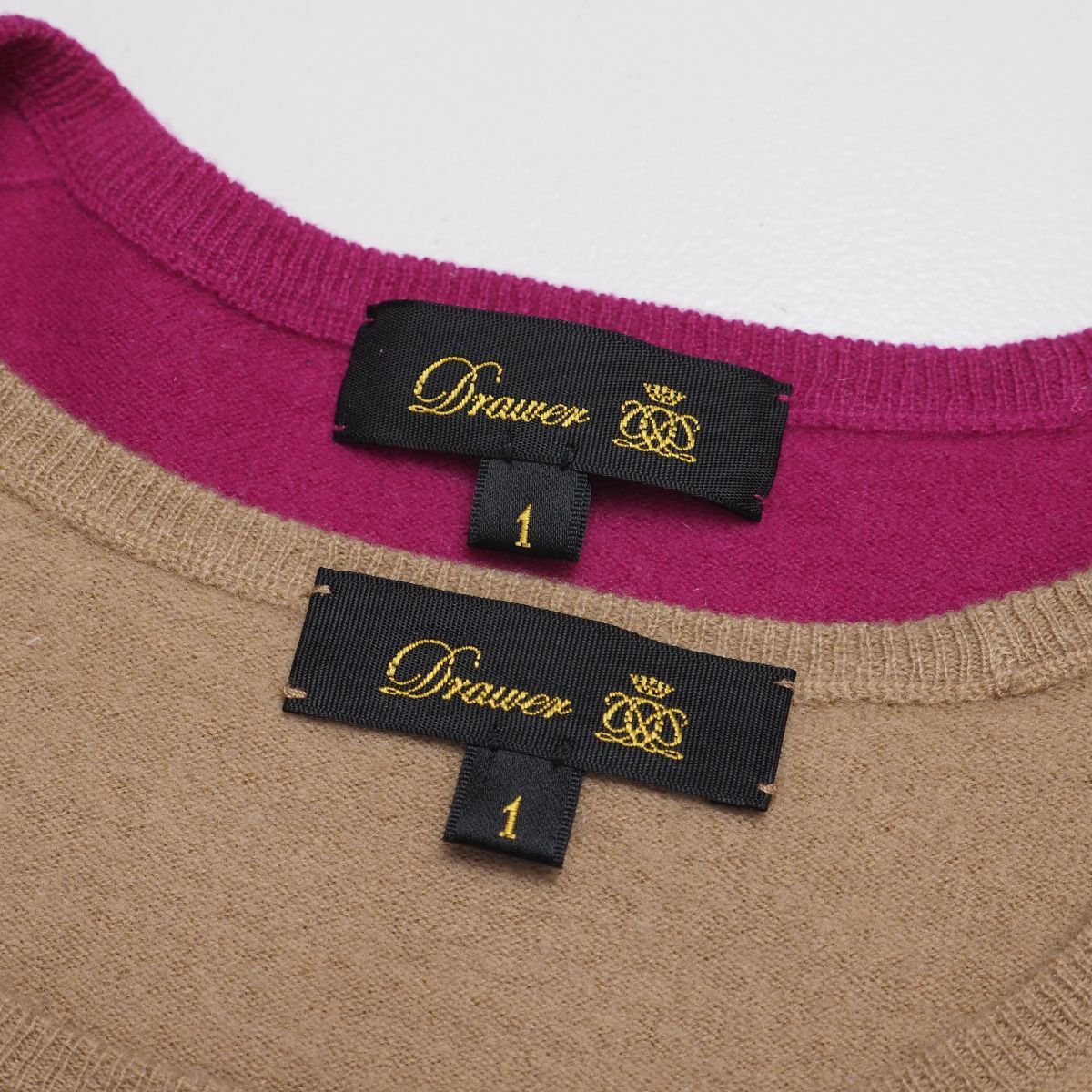 | MH9096》2点セット DRAWER ドゥロワー ニットプルオーバー 長袖ニット カシミヤ混 ウール 無地 サイズ 1 ベージュ/パープル系 | |||