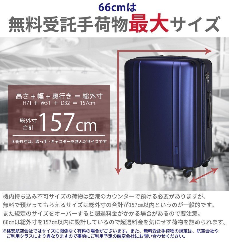 商品の製造過程や保管時にできた若干の傷、汚れがあるため格安で提供しております。 ご使用に際しては問題ございません。気になる方は入札をお控えください。 アウトレット品にご理解を頂ける方の入札をお待ちしております。 進化を遂げた軽量ボディ。 心も足取りも軽くするスーツケース≪ZEROGRA2/ゼログラ2≫ 驚きの軽さと快適性をぜひ体感して下さい。 ![]() ![]() ![]() ![]() ■ポリウレタングリップ 持ち上げた際の握り心地がよく、長時間持っていても手が痛くなりにくいポリウレタングリップを採用。旅行時は階段の上り下りや、預け入れ荷物の受け取り時など、意外とケースを持ち上げる機会は多いもの。何気ないところにも快適性を追求した仕様です。 ■段階調節キャリーバー 段階調節が可能なキャリーバーを搭載。シーンやお好みに合わせて引きやすい高さに合わせられます。※高さの調節は始めに一番上までバーを出し、下げながら調節して下さい※(混雑時の走行は危険な場合がございますのでご注意下さい) ~ 超軽量 ポリカーボネート スーツケース≪ZEROGRA/ZER2088≫66cm~ *商品番号:ZER2088-66 *カラー:マットネイビー *サイズ: 約H66(71)×W48(51)×D31(32)cm ( )はキャスター・取っ手込み総外寸 *重量: 約3.6kg *容量: 105L(約7泊-長期旅行向き) *キャスター:静音キャスター(日乃本錠前社製) *素材: ポリカーボネート *通常価格: 33,000円(税込) *メーカー: siffler(株式会社シフレ) *状態: 未使用 アウトレット 細かな傷があります |