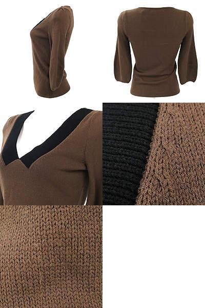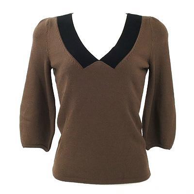 | フォクシー(FOXEY)コゲ茶×黒七分袖ニット 38 | ||||