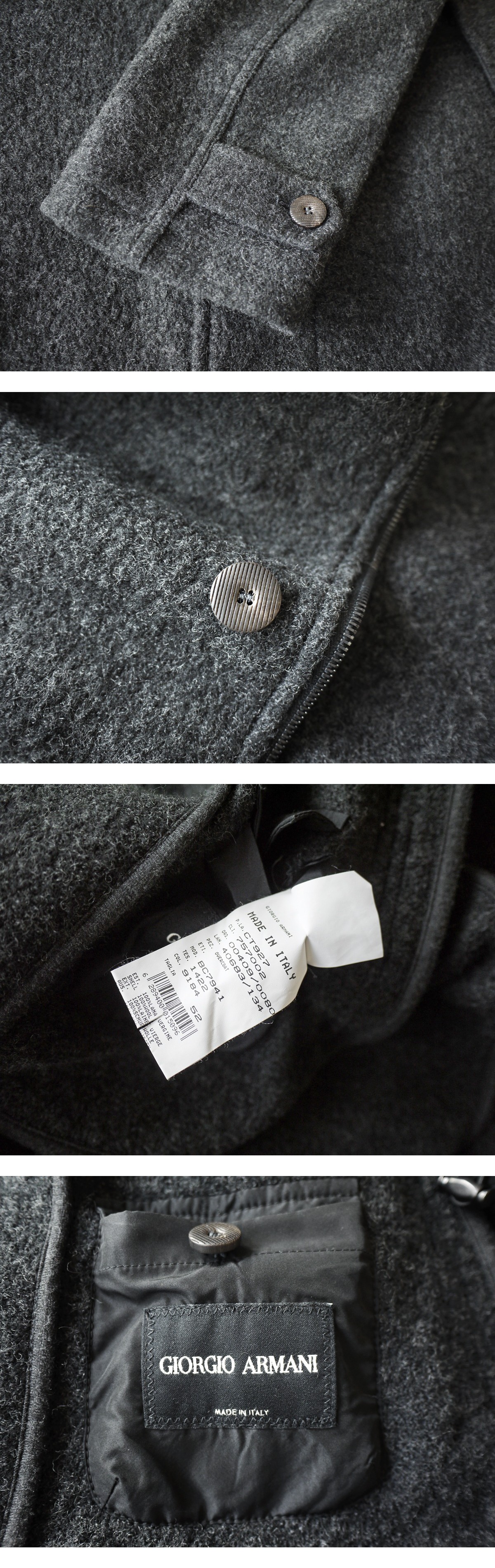 イタリアトップメゾンの名に恥じない精度の高い製法技術と極上の生地を使用し、計算された美しいドロップショルダーからウエストにかけてのAラインで、モードテイストとラグジュアリーテイストを介在させたアルマーニならではの非の打ちどころのないプロポーションです。上質なウールを使用し、着心地、保温性ともに申し分なく、品のあるチャコールグレイがこれからの季節に程よくマッチいたします。高価なもので一生もののコートとしてお使い頂ける逸品です。この機会にぜひよろしくお願いいたします。