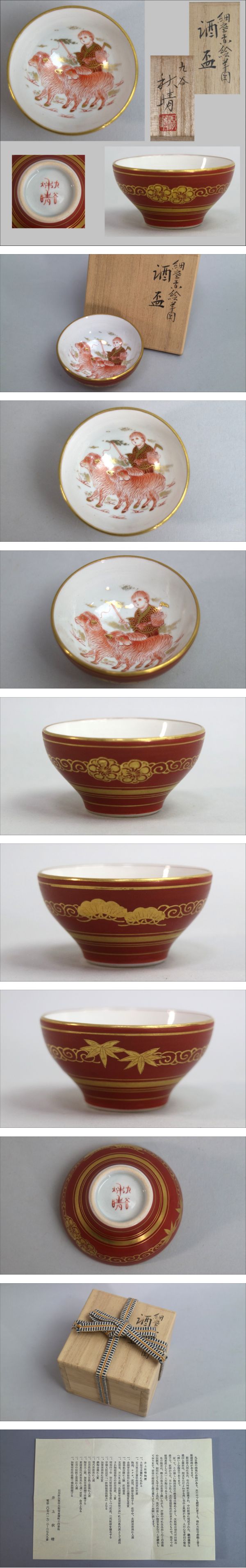 九谷焼 井上秋晴 細密赤絵 酒盃 盃 酒器 共布共箱略歴付き [浏览原始页面]