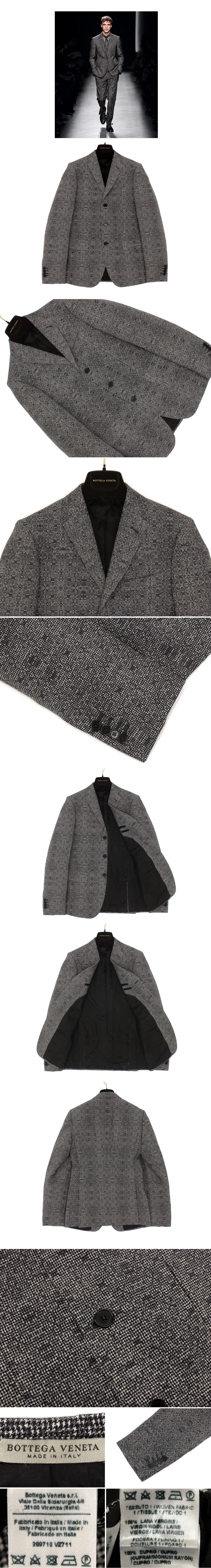 42万新品◆48=M◆ボッテガヴェネタ 濃灰系ハウンドトゥース×イントレ柄ウールジャケット