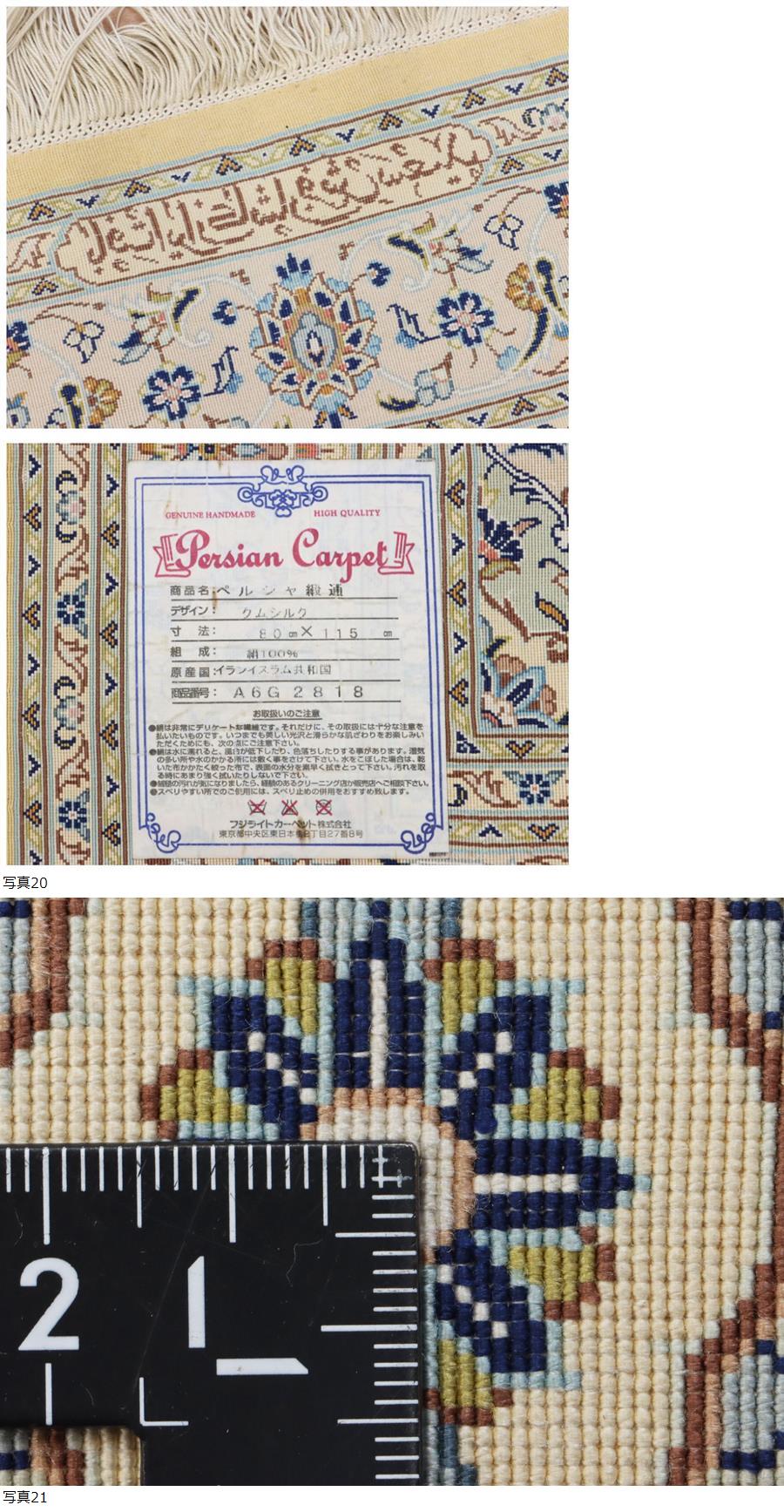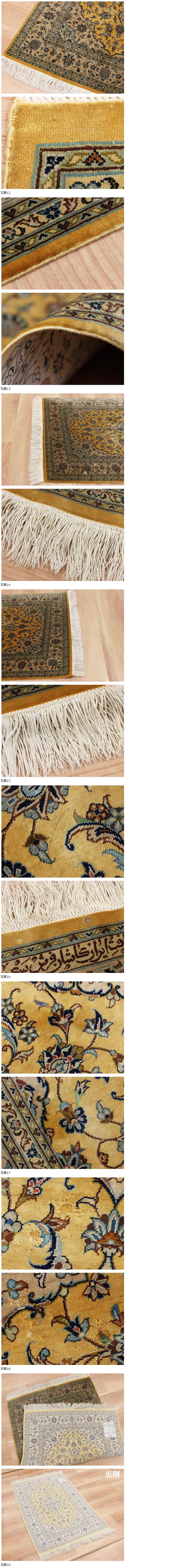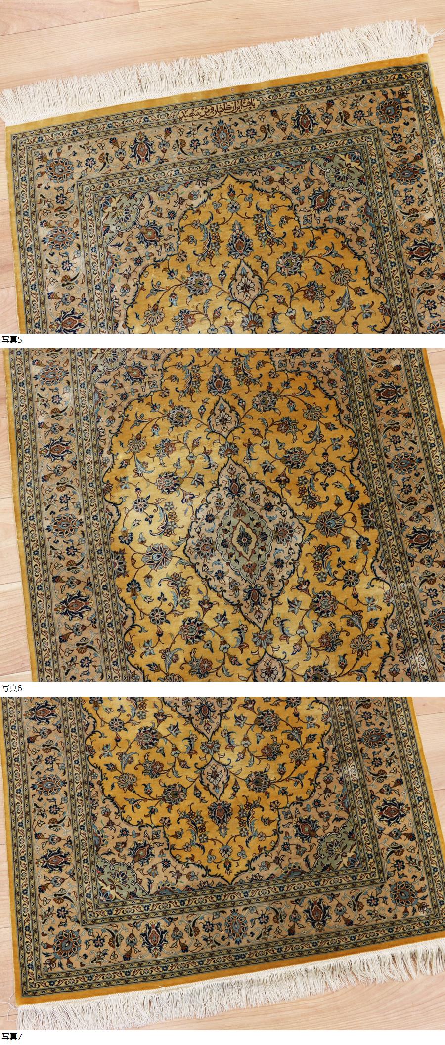 サイズ(約) 79×116㎝(フリンジ含まず)/厚み 3㎜ 付属品 - 高級ペルシャ絨毯 イラン カシャーン産 サイン入り シルク100% 細密手織り110万ノット 80×115㎝ メダリオン イランカシャーン産ペルシャ絨毯でございます。 シルク100% 細密手織り110万ノット 上質なシルクを使用して織られており、密度も110万ノットと細かい高級品です。 状態ですが、シミなど汚れございます。また、一部に虫食いあります。 気になる箇所画像に載せておりますのでご確認ください。 一度人手に渡ったものがほとんどの為、生活臭や保管臭等、臭いの付着があるものもございます。 臭いに関しては感じ方に個人差があるため、臭いが強いものに関しては説明欄に記載いたします。以上をご理解の上ご入札をお願いいたします。 絨毯に関しましては基本的にキャンセルはお受けできかねます。十分ご検討いただき、ご納得いただいた上でのご入札をお願いいたします。 |