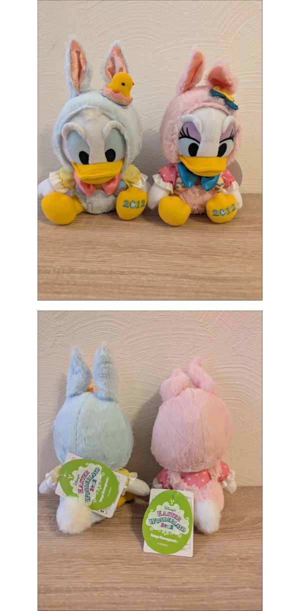| 商品説明 | 【商品について】 ご覧いただきありがとうございます。 この度出品いたしますのは「 ●ディズニー ドナルド デイジー イースターワンダーランド ぬいぐるみ● 」でございます。 個人所有物の整理のため、出品する運びとなりました。 中古品ではございますが、ご活用いただける方にお譲りできれば幸いです。 商品の状態、付属品、寸法等につきましては、掲載写真にてご確認をお願いいたします。 補足:当方、ペットの飼育および喫煙の習慣はございません。お気にされる方はご参考ください。