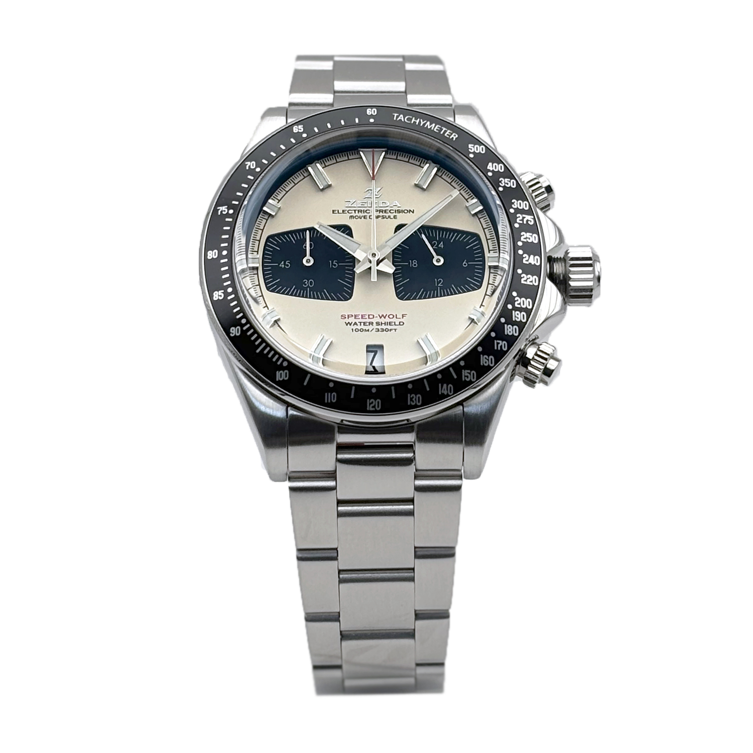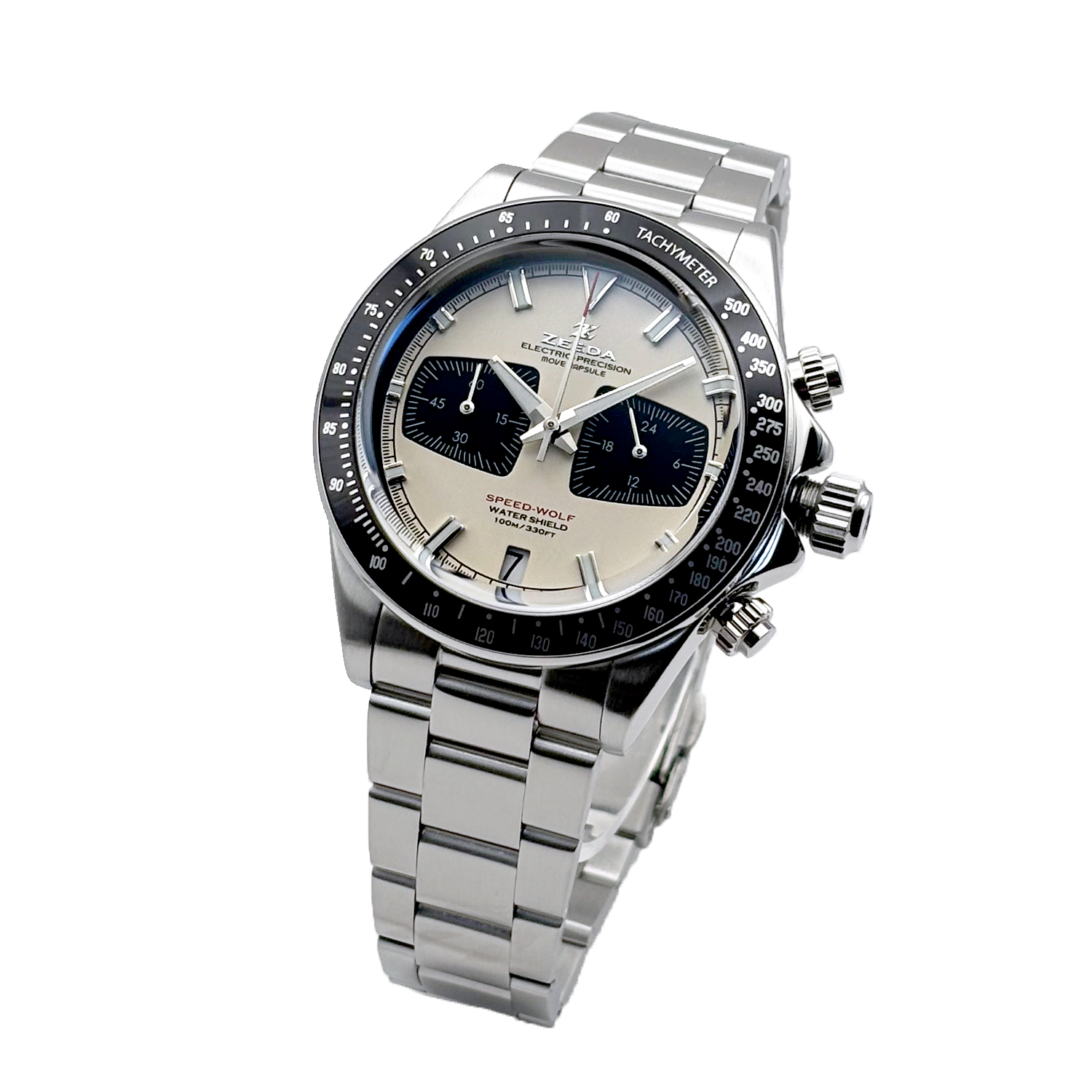ZEEDA SPEED-WOLF ジーダ スピードウルフ クロノグラフ TMI(SEIKO)ムーブ搭載 ソフトホワイト×シルバー メンズ レディース