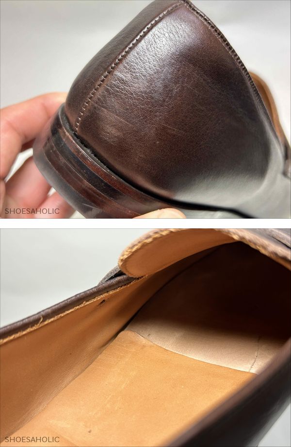| 商品説明 | ●ご試着について:最下段の<特定商取引法>に記載のある東京都国立市の実店舗にてご試着可能です。 ●出品ID:359 ●管理コード:8400 ●ブランド:クロケット&ジョーンズ ●商品詳細:NICE ●サイズ・ワイズ :8E ●右足のソールの実寸: 全長: 30.0cm 最大幅: 10.8cm ●カラー:ダークブラウン ●素材:グレインレザー ●付属品 ( )箱 ( )シューツリー ( )その他( ) *上記のシューツリーに( 〇 )の記載の無い商品は撮影用のツリーのため付属しません。 *箱はヨレ、キレ、スレ、シミ等がある物もありますので、おまけとお考え下さい。 ●全体的な状態:B ( A:試着程度 B:使用数回 C:極上 D:美品 E:中古 F:一部訳あり) ●アッパーの状態 ( ) 試着程度品ですが試着シワ・保管スレキズがあります。 ( 〇 ) スレ、キズ、履きシワがあります。 ( 〇 ) 色ムラ、シミがあります。 ●ライニングの状態 ( ) 試着程度品ですが保管スレキズ・保管シミがあります。 ( 〇 )靴の内側に履きシミがあります。 ( 〇 )靴の内側にスレがあります。 ●ソールの状態 ( )試着程度品ですが試着スレキズ・保管シミがあります。 ( )ハーフラバーが貼ってあります。 ( )トゥはスティール・ラバー・レザーが付いています。 ( )ソールは交換されています。 ( )ヒールは交換されています。 ●特記事項 ・ソックシートにめくれがあります。 ーーーーーーーーーーーー<お知らせ>ーーーーーーーーーーーーー ●お問い合わせについて:質問フォーム またはお電話でお願い致します。 ●実店舗について:店名:シューホリック 所在地:東京都国立市東2-6-6 フジノビル2階 ●営業日について:公式サイト上トップページの「インフォメーション」にてご確認下さい。 ●発送について:定休日・臨時休業日・土日祝日・休暇中 以外の営業日に行います。 ●送料について:ヤマト宅急便 元払い(日時間指定・営業所止め可)の全国一律1000円(北海道、沖縄は+500円) ●入札について:落札後24時間以内に必ず連絡の取れる方、落札後3日以内に決済可能な方のみご入札下さい。 ●お値引きについて:承っておりません。 ●返品について:商品の不備や記載ミス以外、気に入らなかった、サイズが合わなかったなどお客様都合での返品は受け付けていません。 ●評価について:評価は基本的に当ストアよりは差し上げておりません、ご希望の場合お知らせ下さい。 ●同時販売について:実店舗や公式サイトでも併売をしているため、以外で完売後に上で掲載の取り下げが間に合わない場合があり、ご落札後のキャンセルをさせて頂く場合があります。 ●特定商取引法に関する表記● ・販売業者 株式会社 シューホリック ・事業内容 高級靴・高級鞄を専門に販売、輸入および買取業務。 ・運営統括責任者 井上 祐太 ・古物営業許可証 株式会社 シューホリック 東京公安委員会 308891606450 ・郵便番号 〒186-0002 ・住所 東京都国立市東2-6-6 フジノビル2階 ・電話番号:042-508-3596 会社携帯電話:070-4100-5694 ・お支払い方法 かんたん決済 ・お支払い期日 ご落札後 3日以内 .26 |