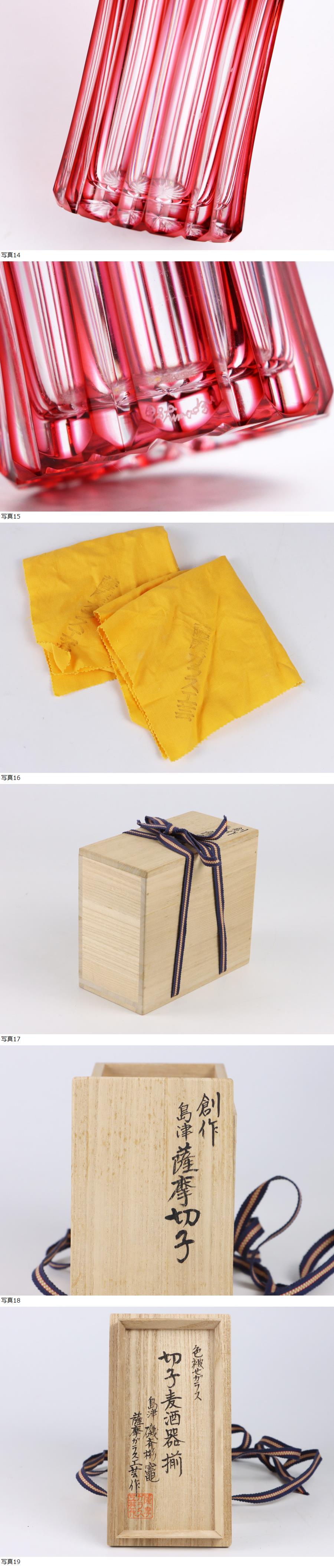 サイズ(約) 高さ 10.5㎝/口径 5.5㎝/重量 140g 付属品 共布・共箱 島津磯斉彬竈 薩摩ガラス工芸作 創作 島津 薩摩切子 色被せガラス 切子麦酒器揃 藍・紅 2点 共箱 本物保証 島津磯斉彬竈 薩摩切子麦酒器揃でございます。 カットの美しいグラスです。 未使用保管品の綺麗な状態です。詳細画像でご確認ください。 |