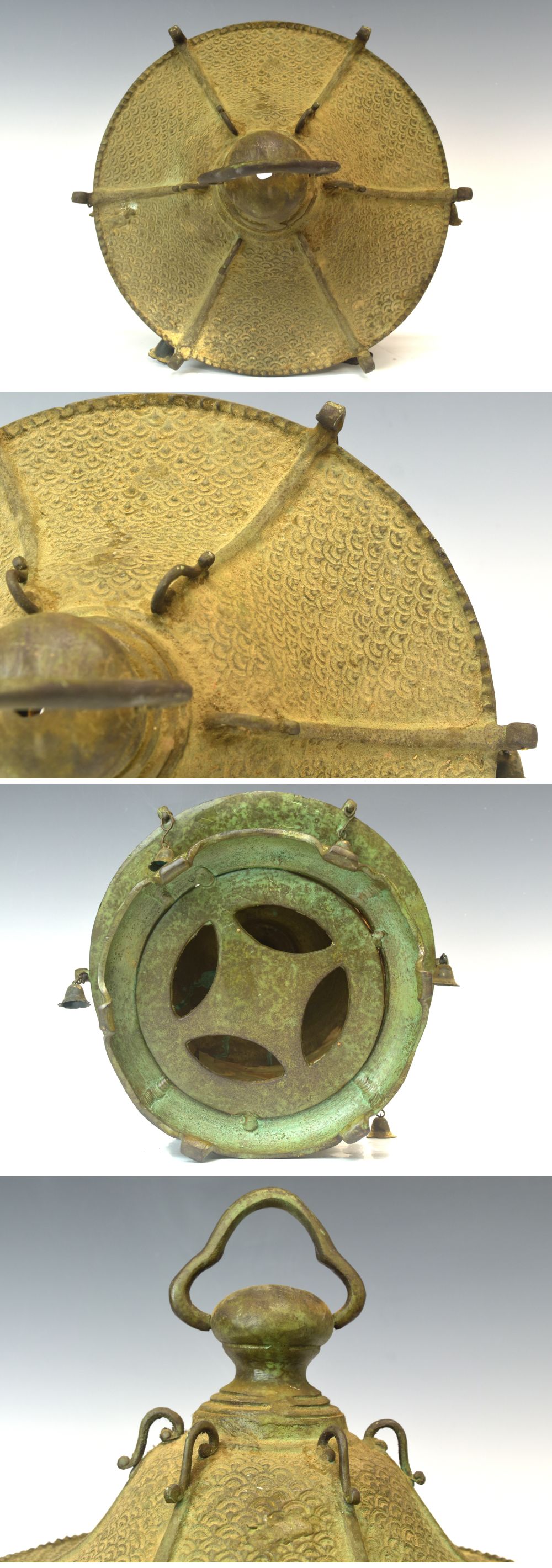 | 商品名 | 時代 銅製 吊り灯籠 高さ31cm 重量1,8kg T2241【趣楽】 | ||
