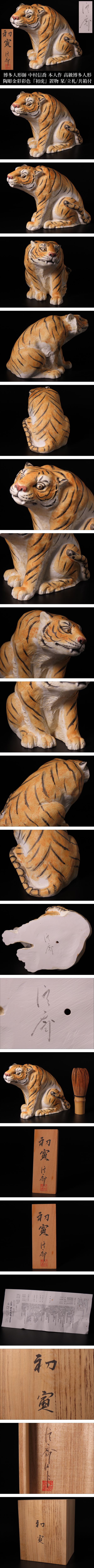 【ONE'S】博多人形師 中村信喬 本人作 高級博多人形 陶彫金彩彩色 『初虎』 寅 幅19cm 置物 栞/立札/共箱付 百貨店購入品 伝統工芸 | |||