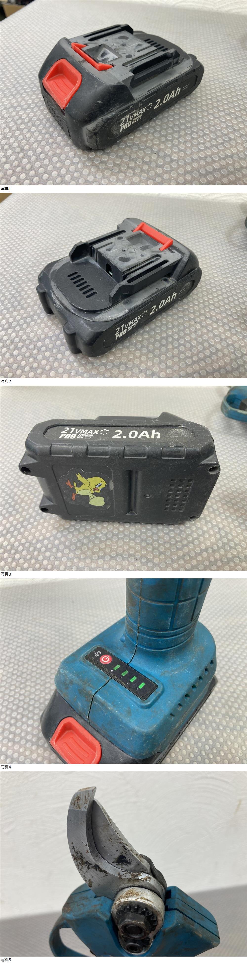 出品の商品は アクラ/AQRA コードレス 電動剪定バサミ 充電式 21Vバッテリー付 ガーデニング 園芸 になります。 出品詳細を最後まで読んで頂き、入札をご検討下さい。 ・自宅にて保管していた物になります。 ※頂き物です。 ※使用品で自宅に保管していました。 ※使用していたので経年による傷みがあります。 ※多少の傷や傷みありますので、写真からお確かめください。 ※使用していた中古品になります。 ※充電器はありません。 ※動作は問題ないと思います。 ※刃にダメージがあります、全体的に汚れもあります。 ※現状品になりますので写真にて確認ください。 ※多少の傷やダメージがあります。 ※詳細分からないので写真から判断ください。 ※頂き物で詳細はよく分かりません。 ※画像から判断できる方のみ入札お願いします。 ※状態は写真から判断ください。 ※現状品になります。 ※状態をよくお確かめ頂いた上で入札検討お願いします。 ※付属品や状態は写真にて判断お願いします。 ・画像で詳細・状態をご確認ください。 ・ご確認したい点があれば、質問よりご連絡ください。 専門知識が必要なご質問にはお答え出来ない事もありますが、可能な限りご返答させて頂きます。 ・画像が全てとなりますので掲載画像をご覧の上ご判断頂きご入札をお願い致します。 | ||||
