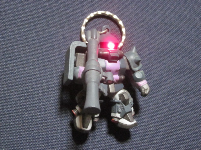 機動戦士ガンダム 高機動型ザクⅡ ライト内蔵モビルスーツキーホルダー中古品ですが目立った傷や汚れも無く状態は良いと思います。ボタン電池交換済み。画像のように背中のスイッチを押すとモノアイが赤く光ります。ノークレーム・ノーリターンでお願いします。また他にもいろいろ出品していますので、そちらのほうもよろしくお願いいたします。