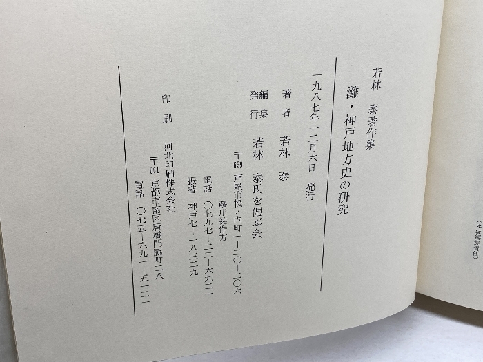 | 灘・神戸地方史の研究 若林泰著作集 若林泰 若林泰氏を偲ぶ会 1987 | |