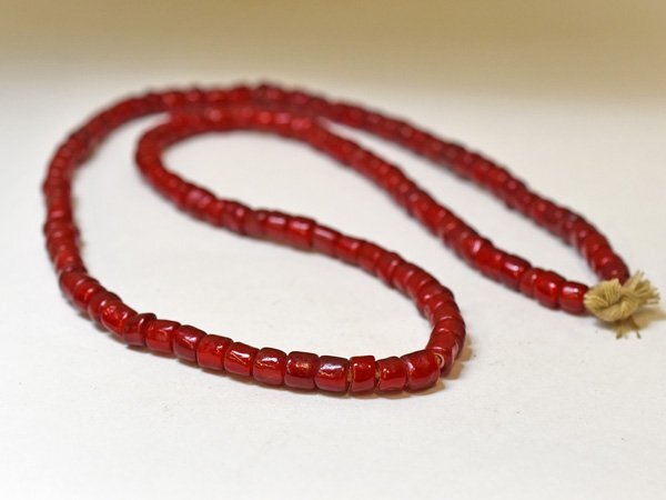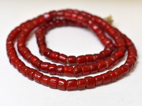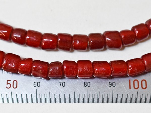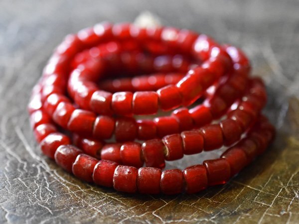 美濃赤! ANTIQUEホワイトハーツ濃赤筒型大粒ビーズ一連(Φ7.0mm) | |||