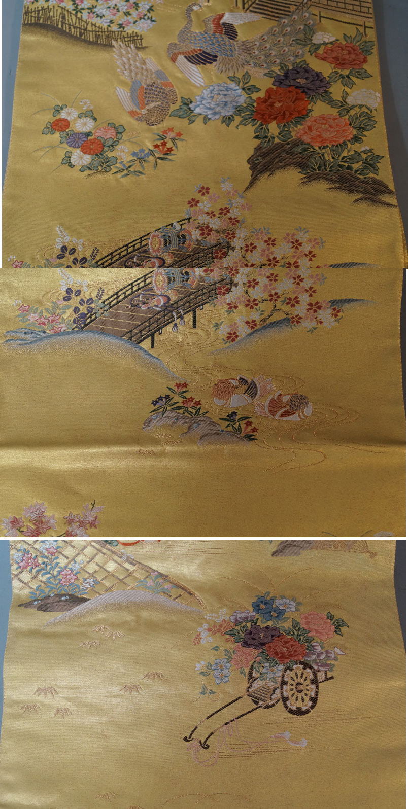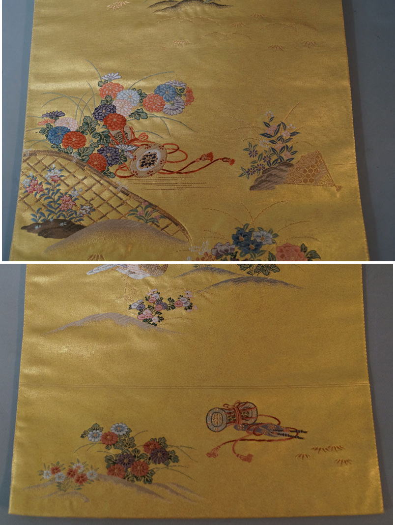 | ye24-桃山屏風 本袋帯 六通柄 落款 本金箔 正絹 金糸 花鳥文 孔雀 高島屋 着物 最高級 仕上がり品 着物帯 和服 和装 |